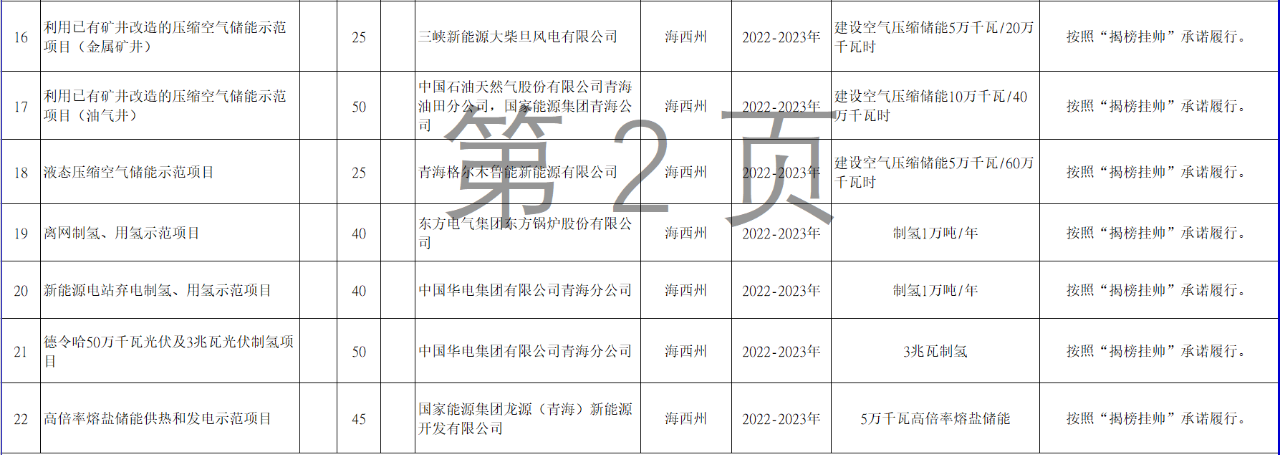 三是试点推进“揭榜挂帅”新型储能示范项目配套新能源项目。为吸引更多社会资源参与储能技术研究和产业创新,加快打造国家储能发展先行示范区,开工建设“揭榜挂帅”新型储能示范项目配套新能源项目10个、合计新能源427万千瓦。项目建设年限为2022年至2023年,2022年全面开工、2023年底前实现全容量并网。项目建设以推动多元化技术开发示范应用为目的,其中压缩空气储能和制氢示范项目配套的新能源项目,电网公司收购电量按照“揭榜挂帅”项目业主申报承诺履行,配套的新能源项目和储能项目需同步投产。严禁只建设风光项目,配套储能项目不投产。