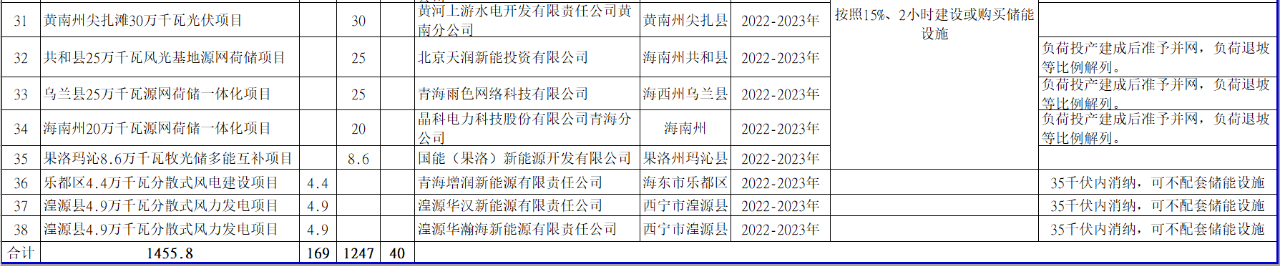 《2021年青海省新能源开发建设方案》中,青海龙投盈信大柴旦2万千瓦分散式风电项目、青海尚能大柴旦2万千瓦分散式风电项目、海汇贵德3.8万千瓦分散式风电项目、青海新海时海晏1万千瓦分散式风电项目因未按期开工建设,已由原核准(备案)机关予以废止,特调整出《2021年青海省新能源开发建设方案》。