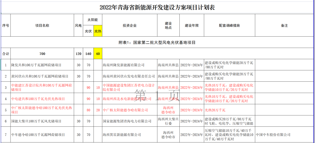 1、中能建江苏设计院共和100万千瓦源网荷储项目(光伏90万千瓦+光热10万千瓦,建设或购买电化学储能10万千瓦/20万千瓦时),投资企业为:中国能源建设集团江苏省电力设计院有限公司。