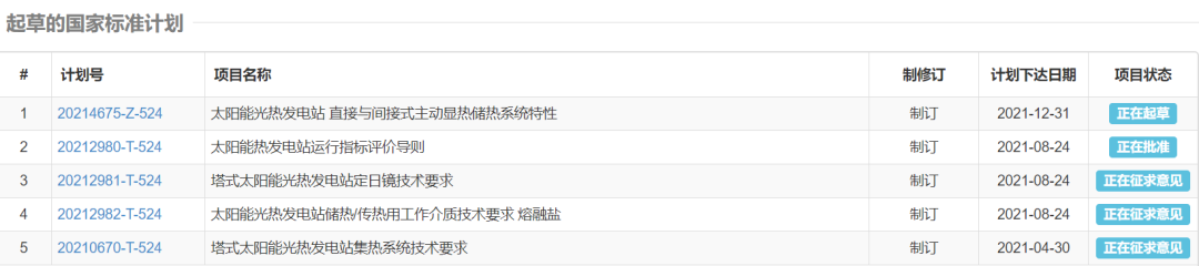 《太阳能热发电站运行指标评价导则》等国家标准正在开展