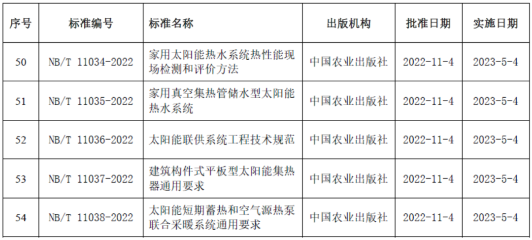 近日,国家能源局2022年第5号公告发布了237项能源行业标准,其中,含五项太阳能热利用行业标准。