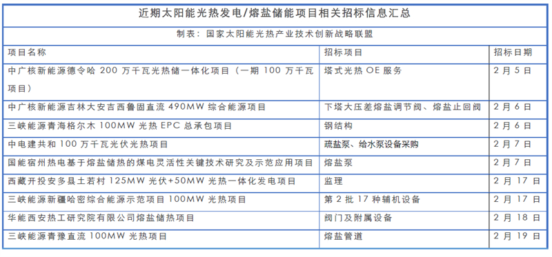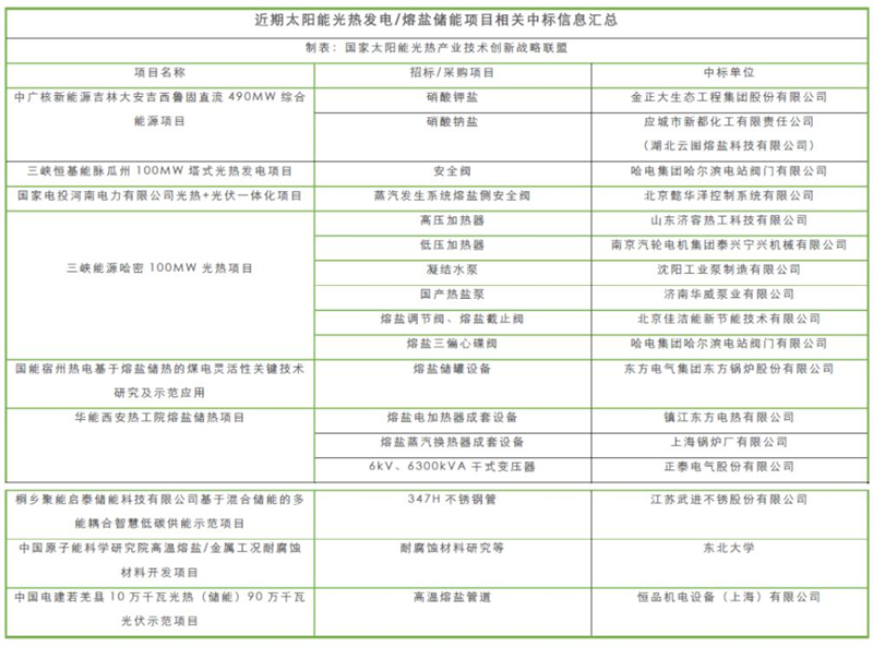 光热发电/熔盐储能项目近期招投标信息汇总