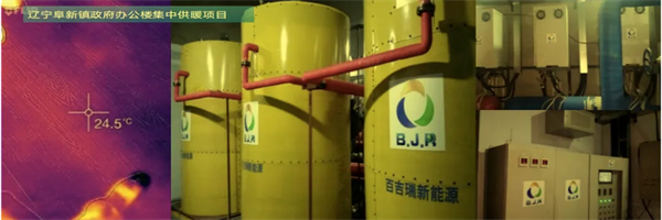 √2016年9月,为辽宁省阜新镇政府办公大楼谷电蓄热熔盐供暖系统,研发并提供模块化单罐熔盐储热装置;
