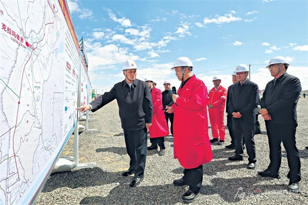 自治区党委书记马兴瑞来到克拉玛依风城油田高温光热利用先导试验项目建设现场(石榴云/新疆日报记者崔志坚摄)
