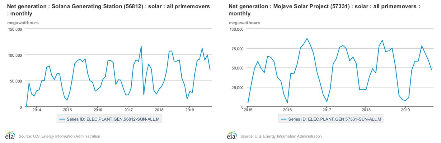 图4 美国Solana和 Mojave两电站年度季节性运行曲线