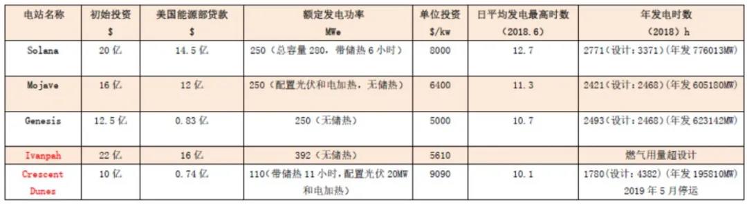以美国Solana和Mojave两个槽式光热电站作比较,电站设计均出自西班牙Abengoa Solar公司之手,相同规模、相同设计,区别在于Solana带储热设备,而后者无储热设备,两者相差4亿美金,如和Genesis比较投资增加7.5亿美金。如表1所示。