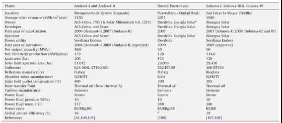 表2 西班牙三个电站比较