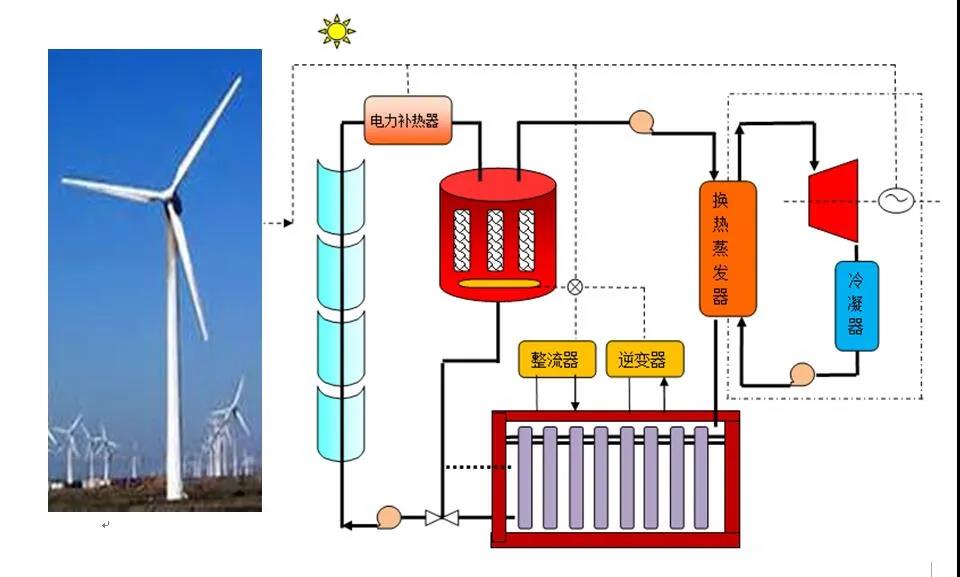 图8 风力热储能发电系统,借用光热发电熔盐储热模式