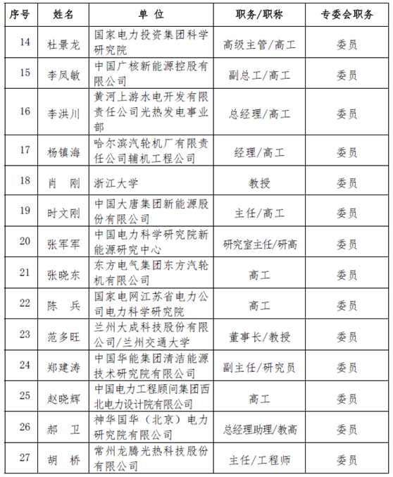 附:中国电机工程学会太阳能热发电专业委员会第一届委员会名单