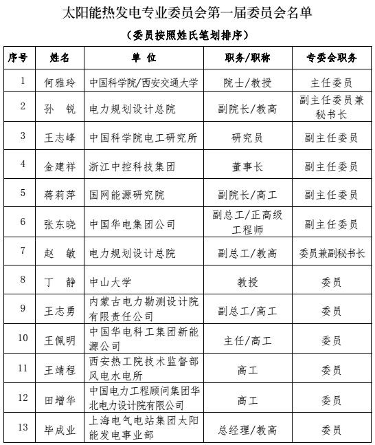 中国电机工程学会太阳能热发电专业委员会成立(附名单)