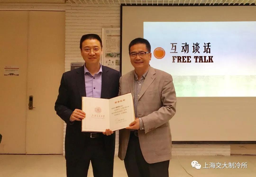 活动接近尾声,王如竹为杨燚华颁发了“上海交通大学制冷学科卓越校友”荣誉证书。