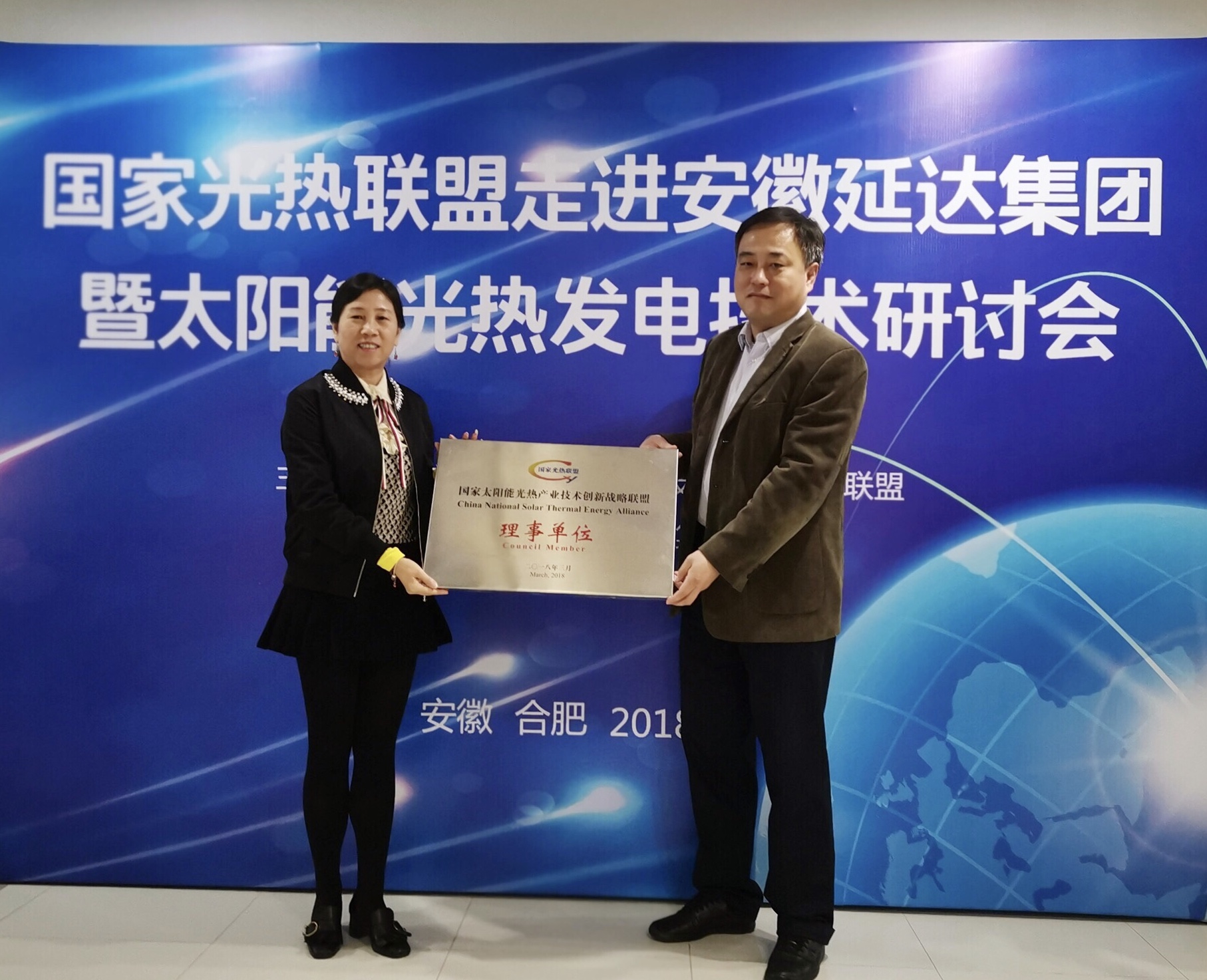 延达能源董事长张梅介绍说,安徽延达集团(下文简称延达集团)成立于2000年,经过十多年的发展壮大,其全资子公司——延达能源于2017、2018年连续两年成为全国工商联新能源商会常务副会长单位,2018年正式成为光热联盟理事单位。
