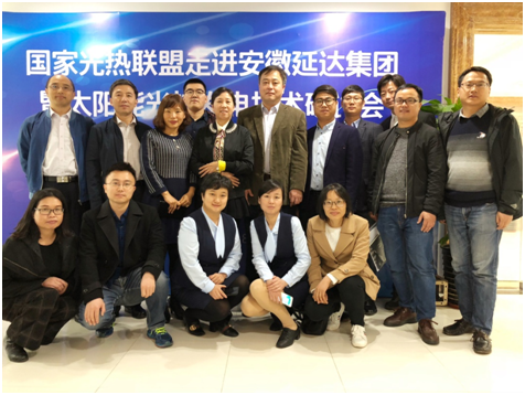 (下文简称光热联盟)秘书处的组织下,国家电投集团中央研究院、江阴市华方新能源高科设备有限公司、山东电力工程咨询院有限公司、武汉圣普太阳能科技有限公司、中广核新能源控股有限公司、中国科学院电工研究所、中国能建集团装备有限公司、浙江大明玻璃有限公司等光热联盟成员单位及业内企业代表十余人一同走进安徽延达能源科技发展有限公司(下文简称延达能源),就太阳能热发电相关技术和产业发展情况进行交流讨论。光热联盟副理事长、国家电投集团中央研究院太阳能所所长宗军博士参加了本次走访活动。