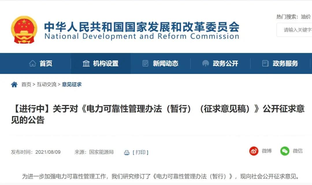 为进一步加强电力可靠性管理工作,我们研究修订了《电力可靠性管理办法(暂行)》,现向社会公开征求意见。